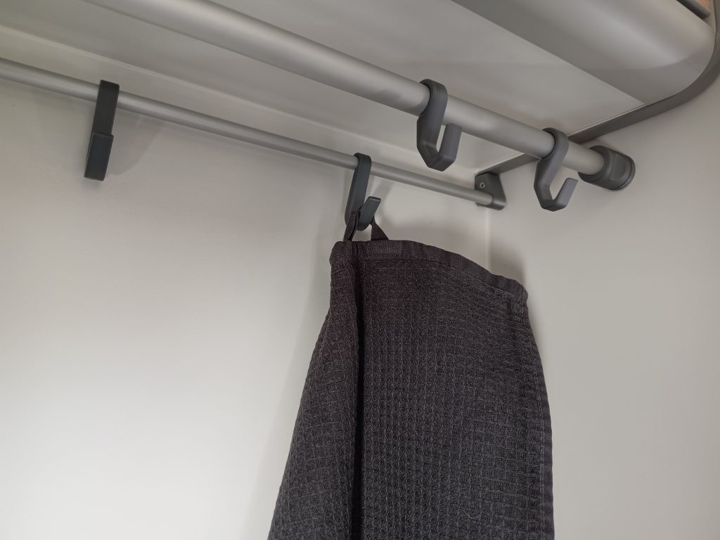 viel Platz zum Schnippeln dank freitragendem Tisch mit Drehplatte und 2 Gasflammen drinnen, zusätzlich 2 Flammen draussen zum Kochen oder Grillen dank Gassteckdose